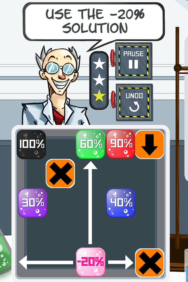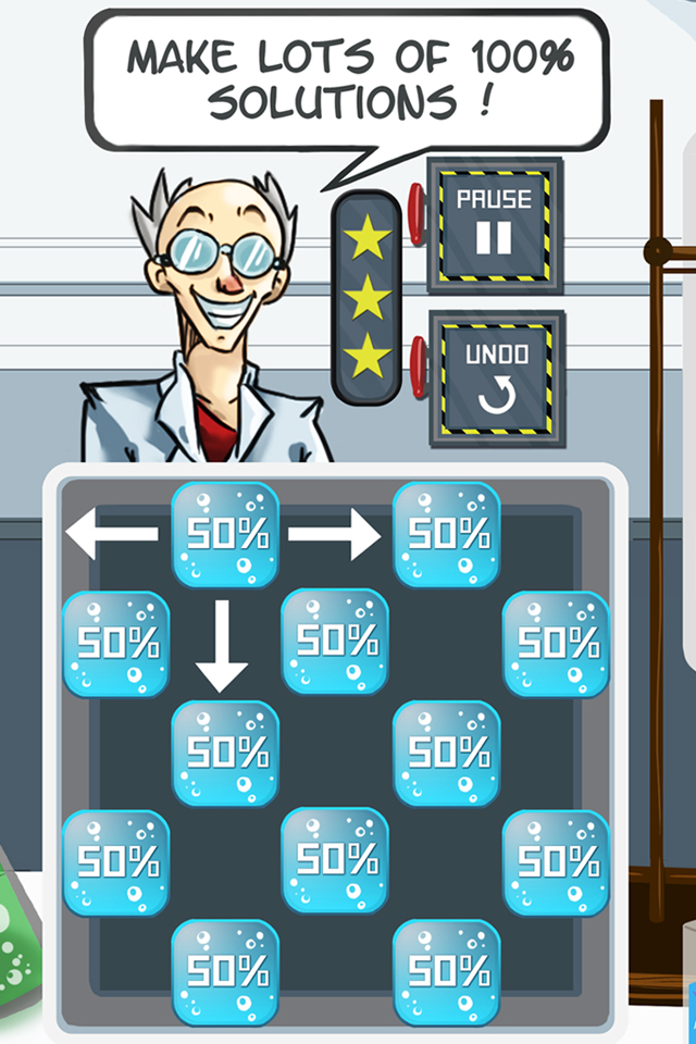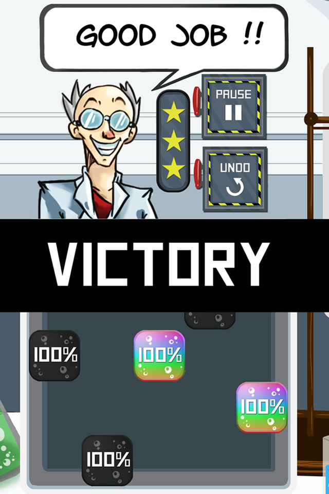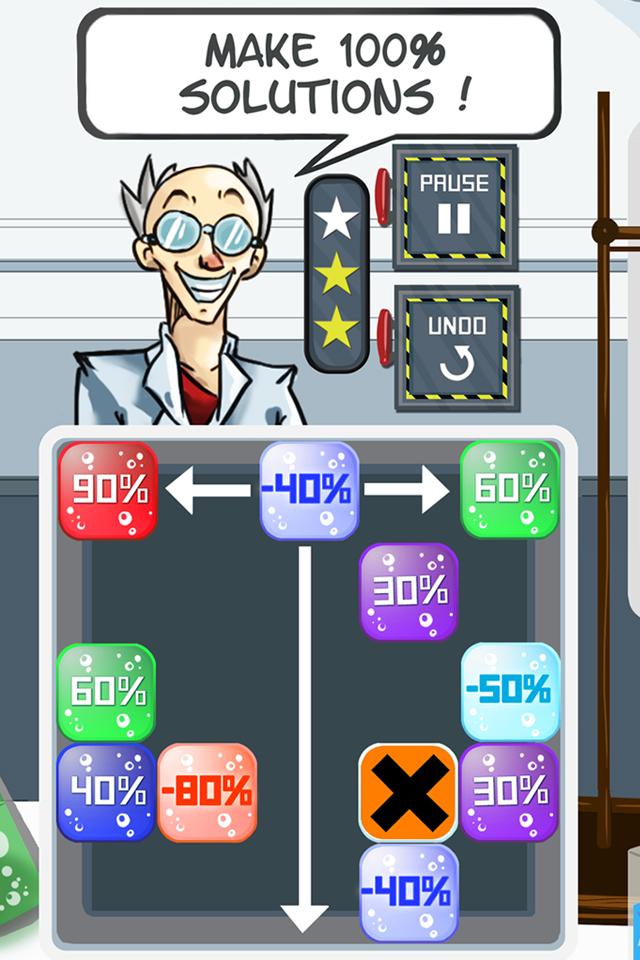 You’re a big fan of puzzles and you like making your brain work? If this is the case, 100% is the perfect game for you. Put your neurons to the trial through sixty levels in this brain teaser and prove your intelligence! If only your laboratory had been guarded better! During the night, someone broke into it and spilled all of your chemical products! Luckily, you were working with jelly-like matters so it’s not completely lost. You just have to spend a moment making them slide on the flooring to put them back together! 100% is a game of puzzle and reasoning in which you must recreate cubes of 100%. Each level contains multiples cubes marked with a percentage. These cubes can slide horizontally or vertically and when they touch each other, they fuse and their percentages add up. If you make a 100% cube, it freeze and cannot be used or moved anymore. Reform all the cubes to reach the end of the level. CARACTERISTICS - 60 levels - 180 stars to collect - Best score - Touch the screen to interact