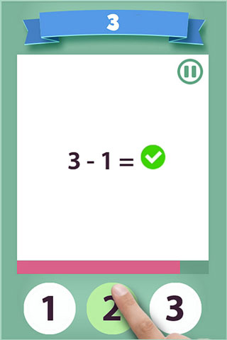 1+2=3 is a simple, fun and educational math game in which all equations are designed around the numbers 1, 2, 3 and the operators plus and minus. Even the answer will always be 1 or 2 or 3. Sounds easy? It is! But wait! There is one difference to the tasks, the kids have to solve in school: You have only 3 seconds time to calculate or to decide what could be the correct answer! Increase your score with each equation solved in succession and unlock achievements while you play. Be aware, the tasks will be easy in the beginning but soon the game will become a challenging and absorbing brainteaser! Play 1+2=3 now for free and prove that you are smarter than a six years old!