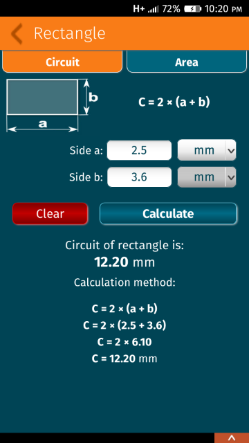 Calculator for calculating perimeter (circumference) and area shapes, surface area and volume solids. Calculate: - perimeter of square and area of square - perimeter of rectangle and area of rectangle - circumference of circle and area of circle - perimeter of triangle and area of triangle - perimeter of rhombus and area of rhombus - perimeter of rhomboid and area of rhomboid - perimeter of trapezoid and area of trapezoid - circumference of ellipse and area of ellipse - surface area of cube and volume of cube - surface area of cuboid and volume of cuboid - surface area of sphere and volume of sphere - surface area of cylinder and volume of cylinder - surface area of cone and volume of cone Calculator is only for education. Languages: English, Deutsch, Español, Français, Português, Русский, Čeština