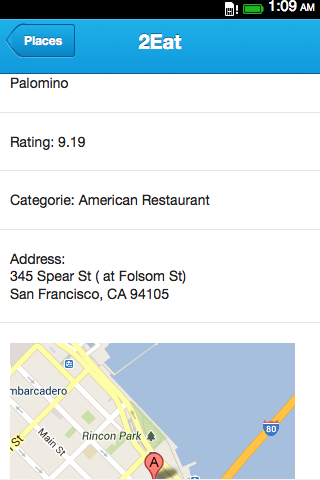 This simple app will help you when you are feeling really hungry! Just clicking a button you will be able to know about all the restaurants that are nearest to you. And not only you will know their name, but the rating, the categorie of the restaurant and the map with its location. You can also find more information about the places thanks to a direct link to the Foursquare page of the restaurant, with photos and customers' reviews. It will be easier to choose where to eat when you are going out, won't it?