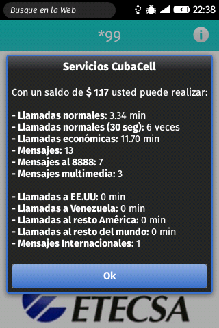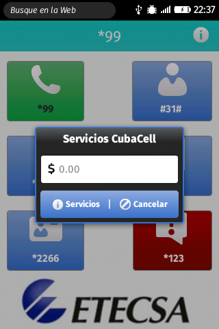 App for Cubacel services: *99, #31#, *222#, *662*