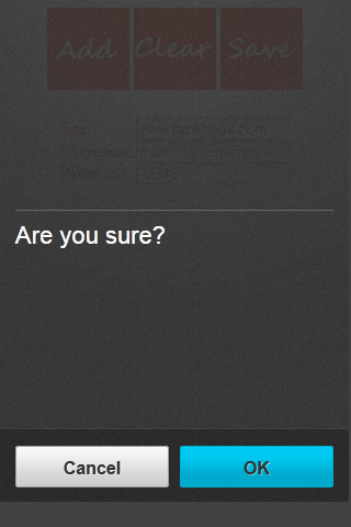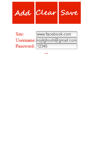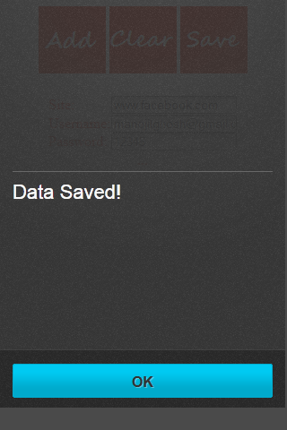 Adora will safely store all your usernames and passwords. Recommended App Usage Instructions: 1. Launch the app. 2. Click on Add. 3. Fill up details. 4. Click on Save. 5. Data Saved! Use the Clear button to delete all saved usernames and passwords.