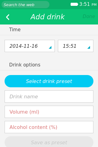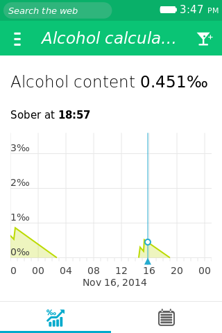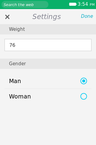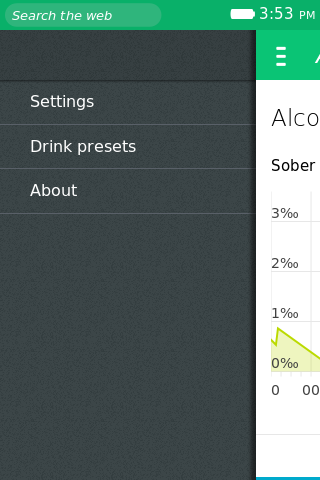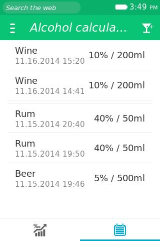 Application to calculate blood alcohol content, from amount of consumed alcohol and user informations. Key features: