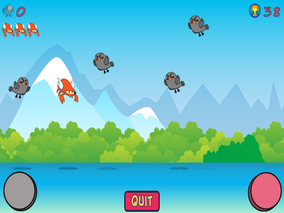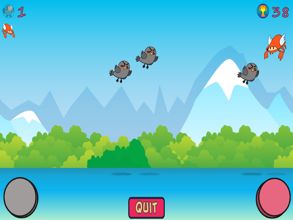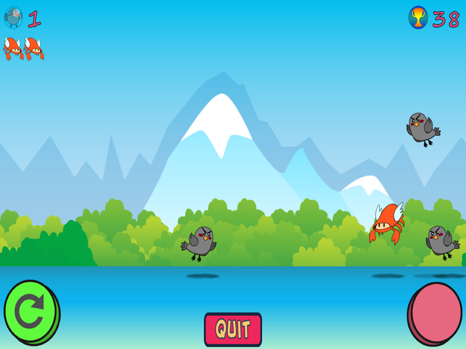 The Ravens have attacked the Crab Island. But don't be afraid, Angel Crab has risen from under the Crab Island sand to protect bushels of crab. Help Angel Crab shoo away as many Ravens as you can.