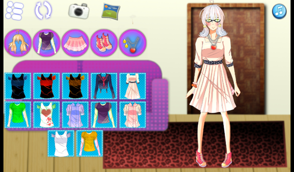 Make a fancy Angela in this cute dress-up game for girls. Pick from five categories of different items like shoes, tops, bottoms, accessories and haircut. Click on snapshot icon and show your lovely creation for friends and family.