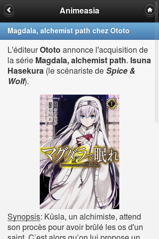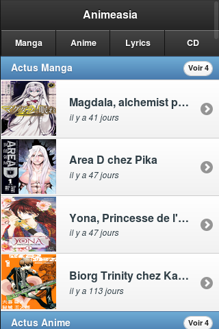 Web app du site animeasia.free.fr , site où vous pourrez trouver des informations sur des manga, les prochain sortie de tome, informations sur les fiches technique d'animes, les CDs, Original Soundtrack d'animes, des paroles/lyrics des opening,ending, insert song etc.. des chansons d'artiste et de l'animation japonais. require une connexion a internet. version beta.