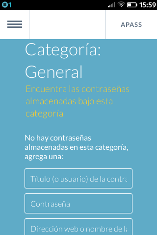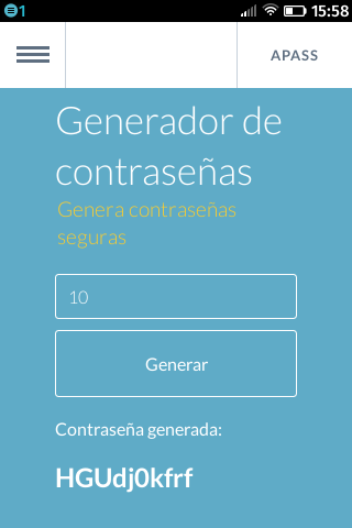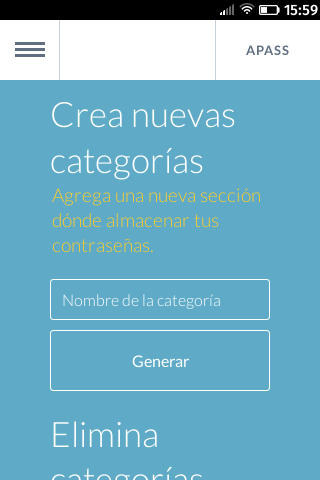 Save your passwords in a secure way with aPass. aPass is an application that let you save passwords, you can create, or delete categories where you will save the passwords. Also, includes a password generator with a length from 1 to 30 characters in a secure way. aPass saves the passwords in a local way, so only you can access them with your username and password.