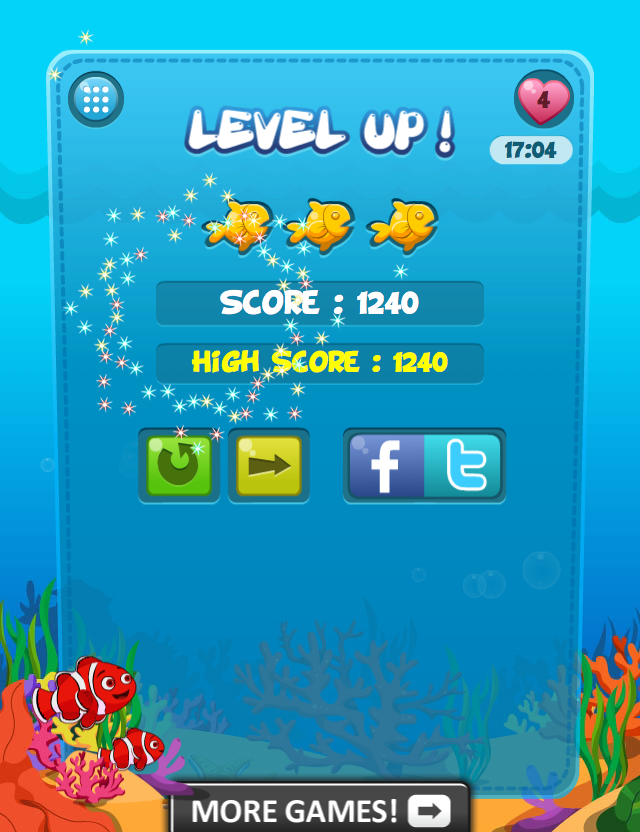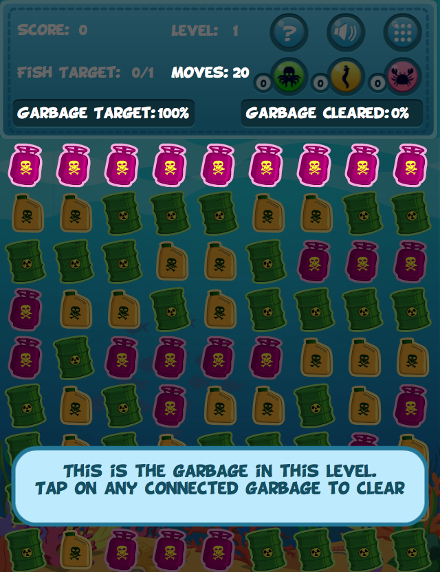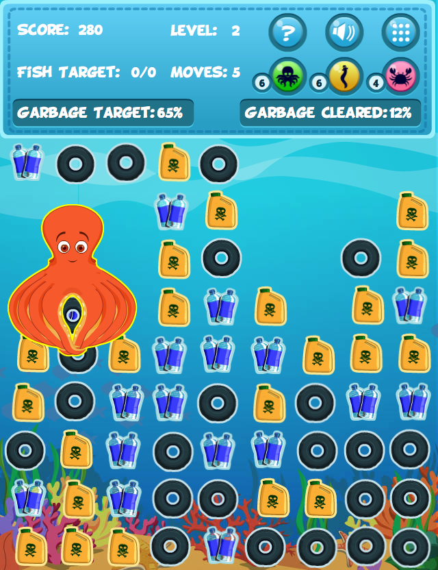 The fish are trapped! Set out on a quest to save them by clearing all the garbage that has been polluting the aquatic ecosystem! Play through 40 exciting levels and use your matching skills to rescue all of them!
