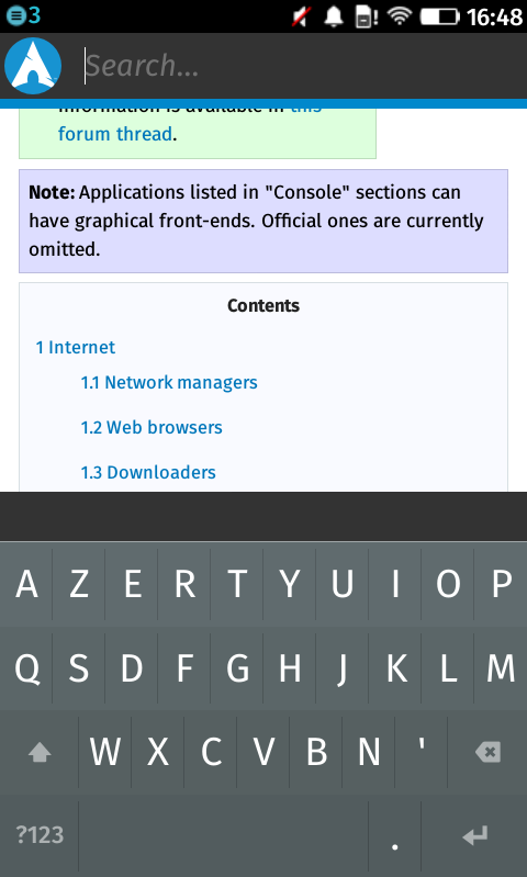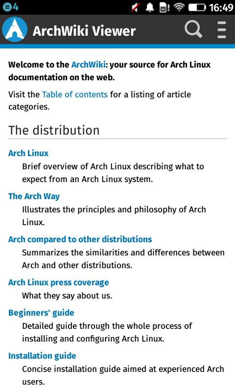 A simple viewer for the Archlinux Wiki for FirefoxOS. Features: