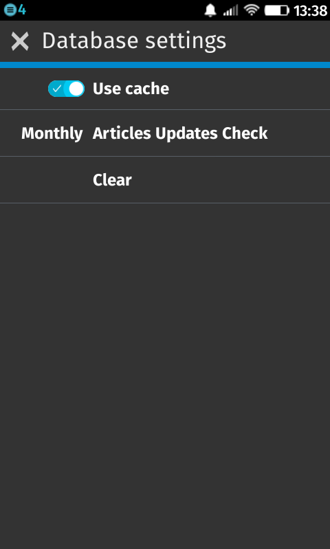 - User can disable/clear the local article database (e.g. to save space on the device)