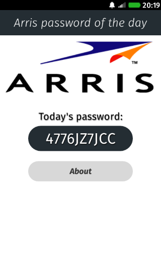 This is a an Arris password of the day generator for various Arris cable modems. Do you need an Arris modem password? Are you stuck with your Arris modem, in a message that says “in order to access advanced features you must enter the password of the day”? Well then, you came to the right place! Please note that I did this mostly for fun and not for profit of any kind, nor does this open up anything private or dangerous to the world. All it allows is to enable or disable a couple of logs, and run some diagnostic tests. In other words, this tool does not provide access to any secret information or allow you to do any malicious actions by itself. This is a list of modems for which this password generator generates valid passwords. If you know other models that work, please let me know in the comments below.