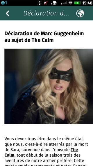 Green Arrow France est une source d'informations sur la série télévisée Arrow. Vous resterez informé sur la série où que vous soyez et à chaque instant. Retrouvez les dernières actualités concernant les nouveaux épisodes, les acteurs ou bien les produits dérivés. N'hésitez pas à télécharger cette application si vous êtes un fan de la série Arrow. Langue Français Site internet www.green-arrow-france.fr