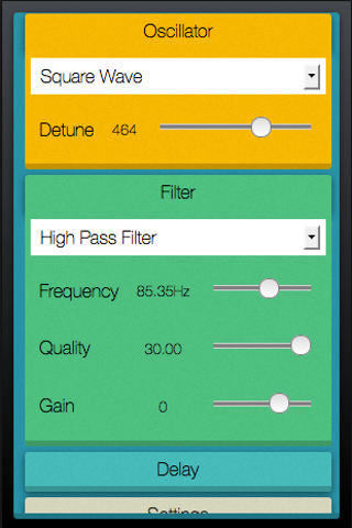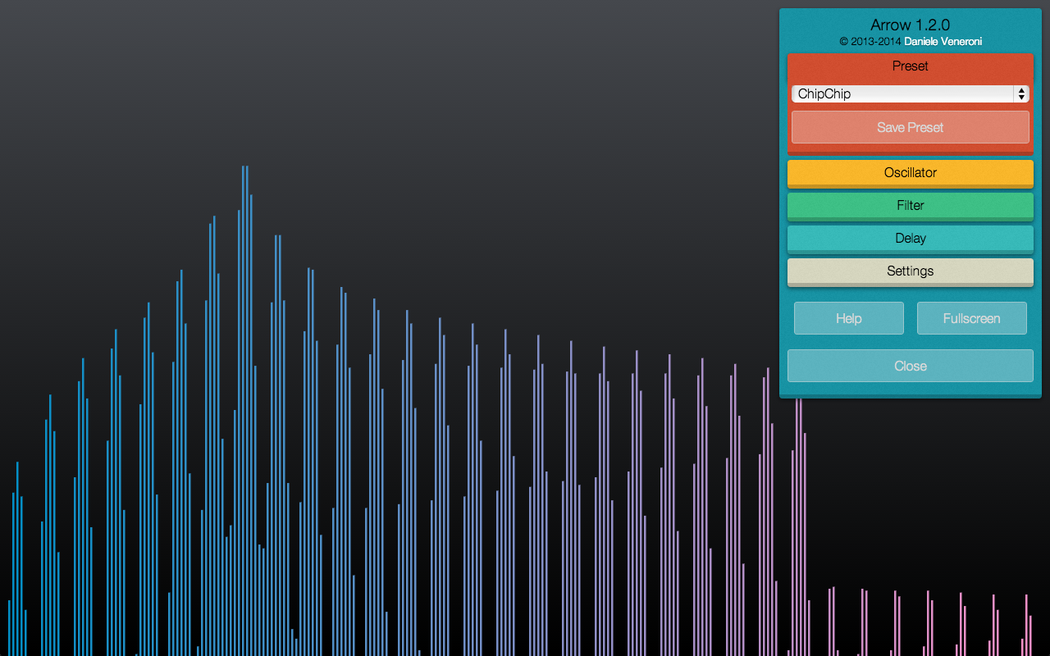 Unleash all the power of the web with Arrow, a powerful synthesizer for the 21st Century! Arrow is a complete synthesizer built on web technologies that features: * Touch and move to control pitch and filter frequency * Play using your computer keyboard * Load factory presets and save user presets * Animated and customizable sound spectrum * Experience total immersion with Fullscreen mode! Try it out also on your PC at venerons.github.io/Arrow