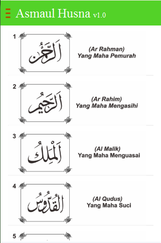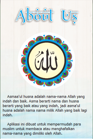 Asmaul Husna is apps about collection beautiful name of Allah SWT.