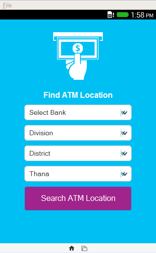 "ATM Booth Bangladesh" is an app where a person from Bangladesh can find out ATM booths location for all available banks in Bangladesh