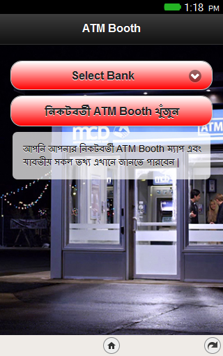 An app to help the common peeople to find out the nearest ATM Booth at the time of Emergency! This app uses the Geolocation to sopt you, findout your nearest ATM Booth and plot on the map using Google Maps.
