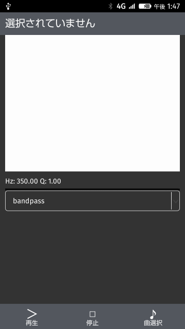 We can apply some filters like low pass filter, high pass filter, reverb, etc bwhen we listen musics. We can chage paramiters of filters by touching and moving your fingers on the music's cover image.