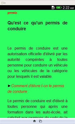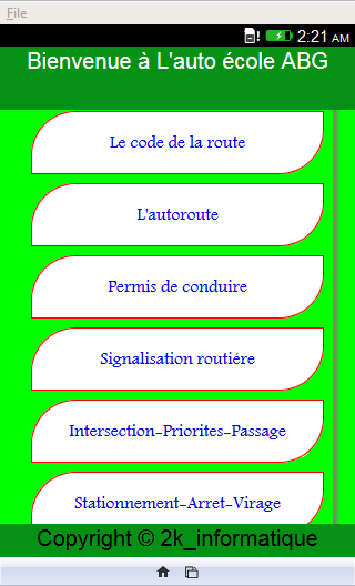 <p>le code de la route</p>