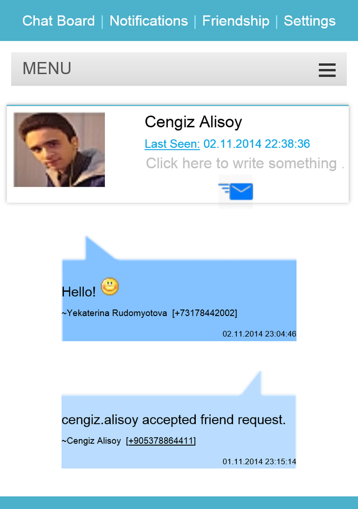 HERE'S WHY YOU'LL LOVE AVE MESSENGERFREE, UNLIMITED No hidden costs. You are free to chat and send an unlimited number of messages anywhere in the world. SAFE AND RELIABLE AveMessenger is a highly safe and reliable application. We respect your privacy. That's why we fully encrypt all your sensitive information with MD5 encryption. PERSONAL Set up your own profile page and upload an avatar and cover photo to show to all your friends. PUSH NOTIFICATIONS AveMessenger uses push notifications to make your two-way conversations fast and smooth. With push notifications, you will instantly get notified about new messages and friends.