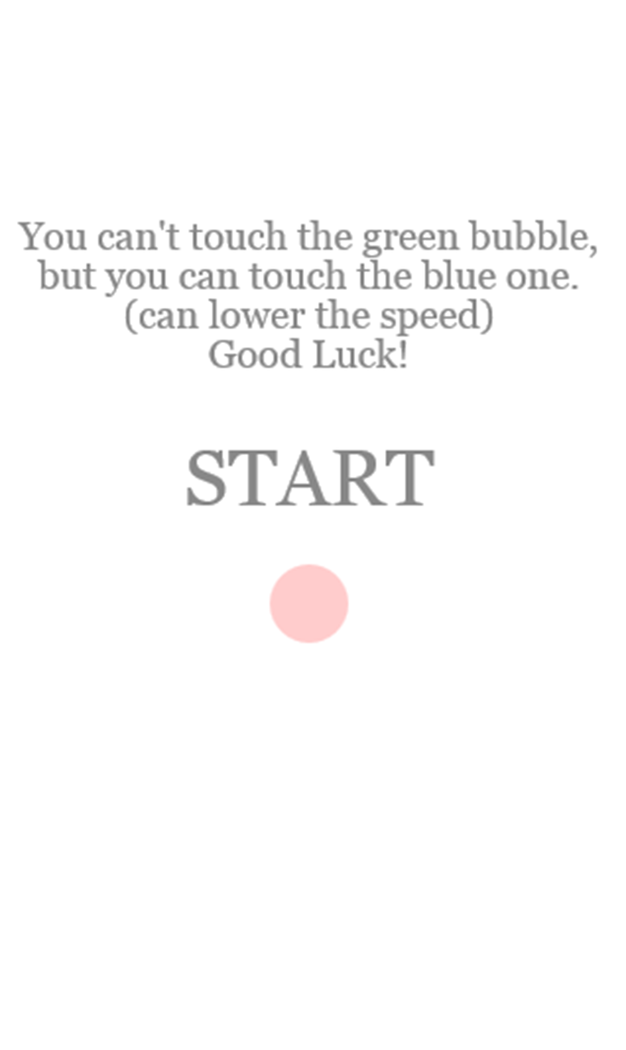 A Sixty seconds Challenge! This is a very simple game to kill time. You need to avoid the green ball,and the blue one can reduce the speed of the green ball.