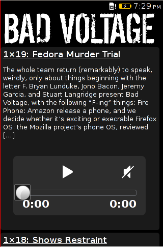 A webapp for the Bad Voltage Podcast. It lists the last episodes and allows you to listen to them. Needs an internet connection as episodes are streamed.