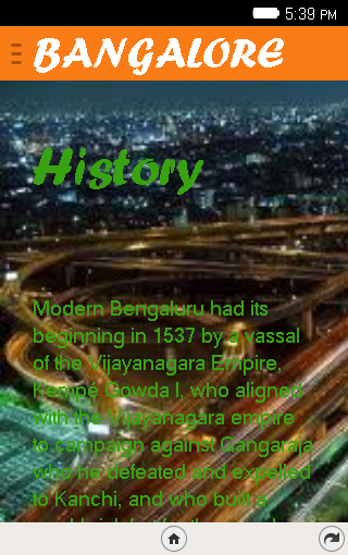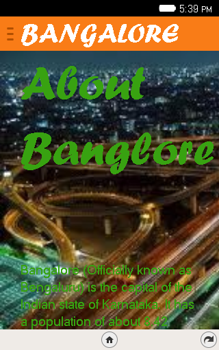 This is very awesome app it will tell about the bangalore city.