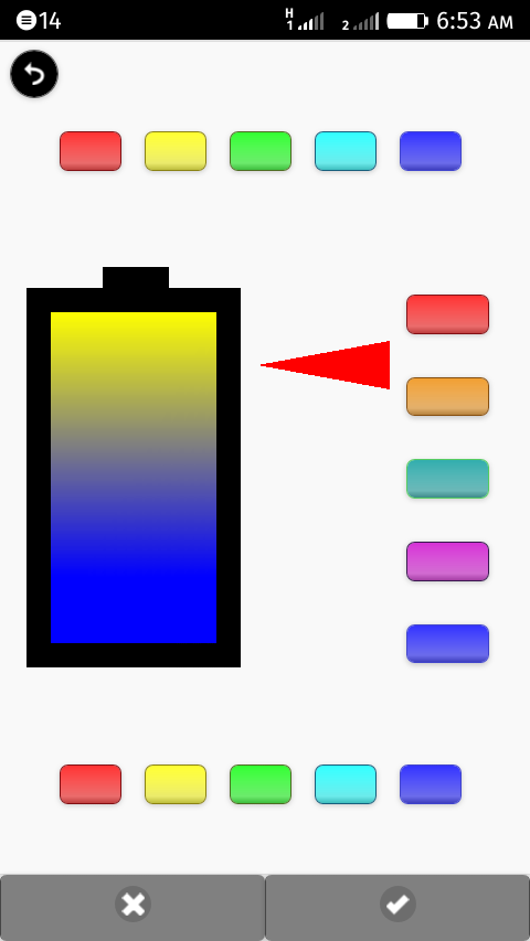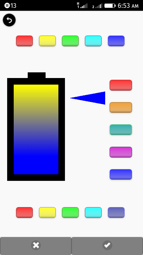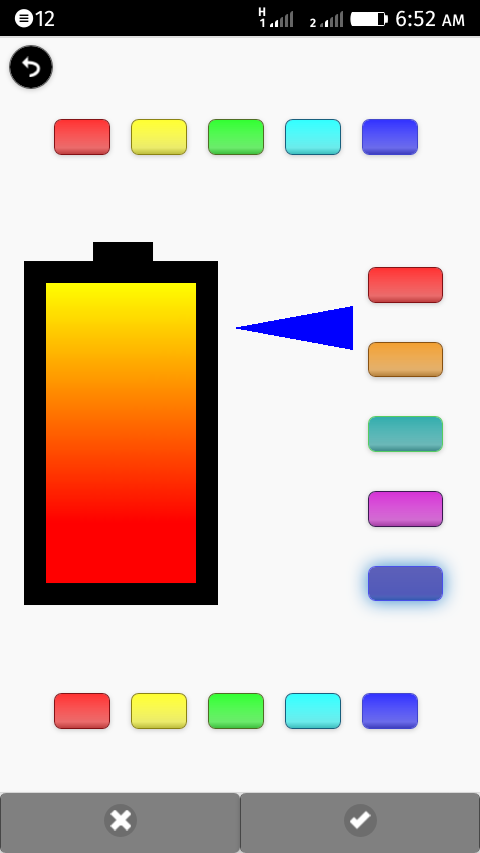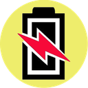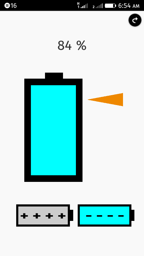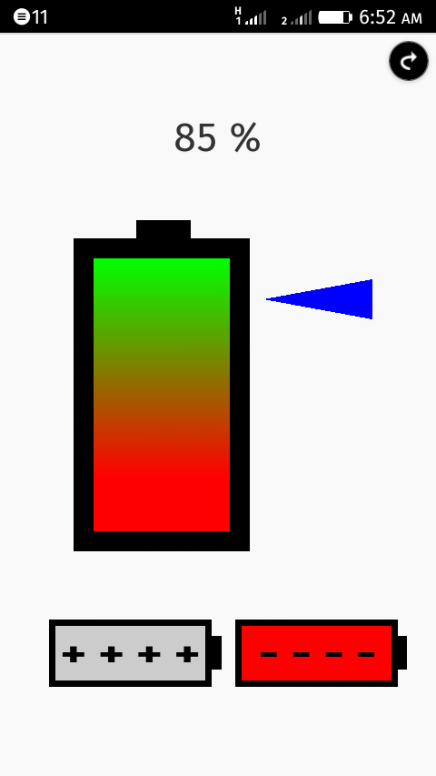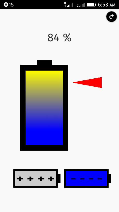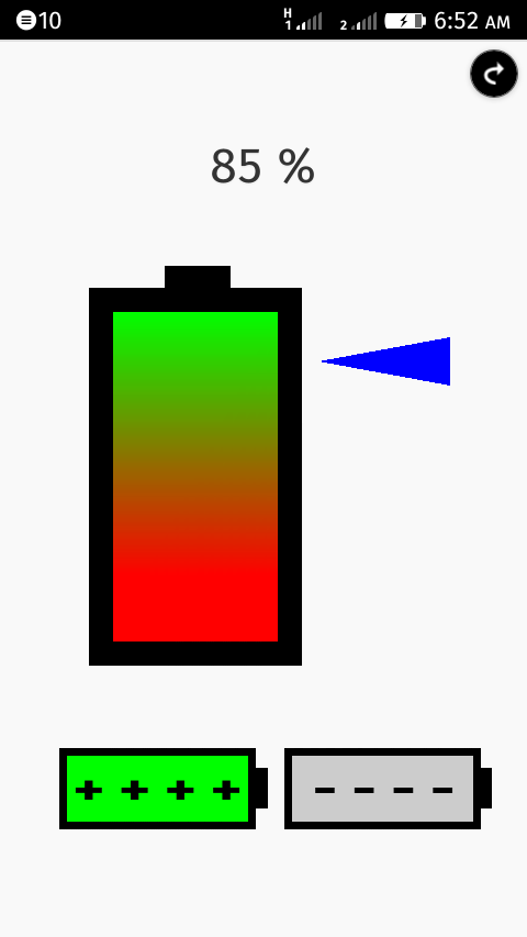 A language-independent battery monitor showing charge level numerically and graphically as well as the charging or discharging status. User choice of colors for battery and pointer. Color changes retained on power off.
