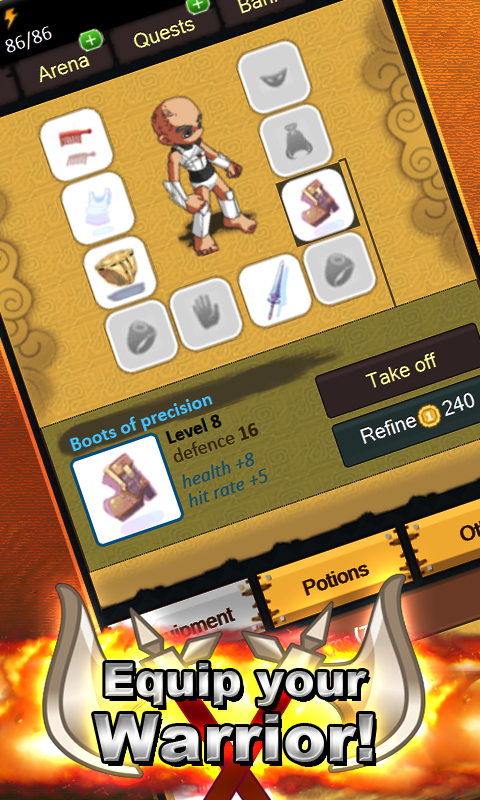 Exciting battles against friends, players and bosses await you! The ultimate Battle Arena is ready for a new true champion. Your sweat and blood will be rewarded!