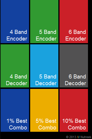 A modern resistor color code calculator and best resistor combination finder tool. # Modern UI Inspired. # 4,5 and 6 band resistance to color code converter/calculator. # 4,5 and 6 band color code to resistance converter/calculator. # Best resistor combination finder for obtaining desired value, in series and parallel. # Clean, easy to use and functional. # 100% free. (Modern UI, formerly Metro UI, is a design language widely used by Microsoft on Windows phones and Windows 8 )