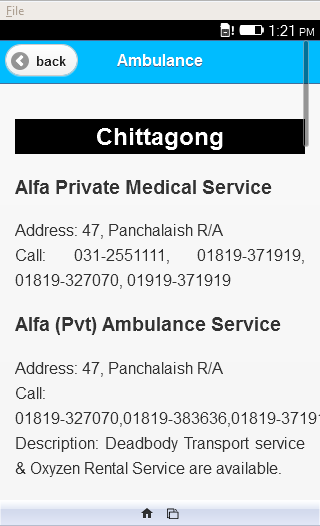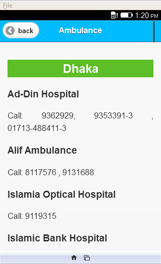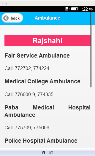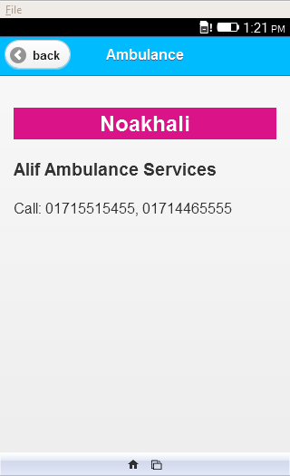 This is the Bangladesh Ambulance Service Contact Application (BASCA). This application will help users find an ambulance their city. Sometimes we need some emergency phone numbers. such as those for an ambulance a hospital, cinic, diagnostic center, fire service or police station. In order to make this app more convenient, we have included numbers for these services.
