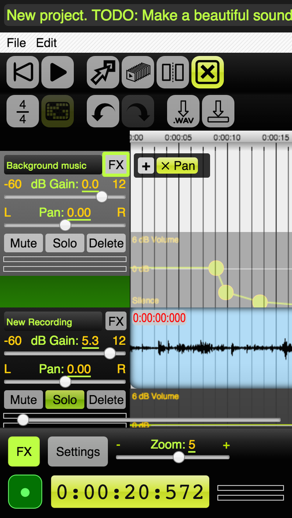 - Change the speeds of audio sections. Unfortunately, pitch is changed in the process. - Edit multiple tracks. Mute and solo. Alter volume and pan. - Move, duplicate, split, and delete sections of audio. - Create custom fade ins and outs with volume envelopes. - Undo and redo. - Control master volume. - Apply effects like filters and dynamic compression to tracks and/or master. - Drag to re-order or move effects across tracks and/or master. - Zoom. - Record through your microphone. - Render collective audio of the project to a track. - Import audio files of various formats. - Snap sections of audio to a grid based on time or 4/4 time signature. - Edit while playing for near-instant feedback. - Works online or offline (after the first online visit to the app). - Works on Desktop and mobile Chrome + Firefox. - Store projects in Google Drive (for that, install through Drive) or as local project files. - Export to 16-bit WAV or 128-bit MP3. - Manage memory. Clear un-needed audio data to reduce the chances of crashing and failed exporting. No plugins like Flash used. = Upcoming Features = - Vary pitch. - Export to OGG. - Tell us what you want to see: [email protected]