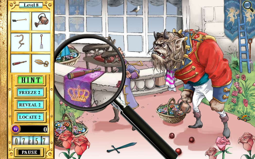 This hidden object puzzle game features Beauty and the Beast complete with high-quality audio narration. The game takes you through the fairy tale story of how Beauty and the Beast meet. Enjoy playing this game with the new magnifying glass feature to zoom in on objects more easily, especially useful when playing on your phone. The heartbroken Beast lies nearly dead when the beautiful Belle happens upon him. Play this free hidden object puzzle game to see what becomes of Beauty and the Beast! Based on the Oxford University Press edition of Beauty and the Beast, this hidden object puzzle game features stunning art and stimulating puzzles designed by award winning game producer SecretBuilders. Each brain-teasing level unfolds a scene from the book with beautiful illustrations and audio excerpts. • Audio narration and book scene illustrations in each level! • Many gorgeous fairy tale scenes across lots of challenging hidden object games levels • Two puzzle modes of free game play: find by picture or by word • Magnifying glass feature to zoom in on those hard to find objects • A fun and enjoyable free game for kids to fall in love with reading and classics education • Among the best educational games for kids and adults to develop visual and spatial puzzle solving skills • Award-winning audio and illustrations from Oxford University Press