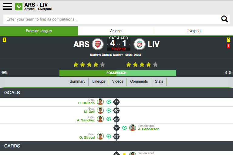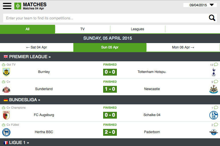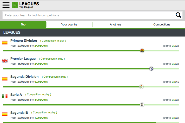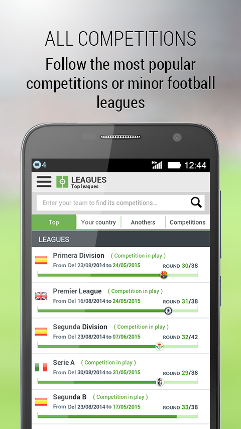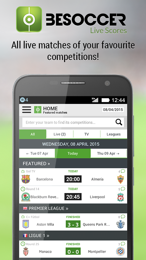 Follow live games, comment with other users and so much more in any of our more than 2,600 current competitions. Your suggestions and comments help us improve and we keep working to continue being the best application of soccer scores. FEATURES - 2014-2015 calendar of games, teams, scores and season tables. - Weekly schedule of games - More competitions and teams than other soccer app - Live individual and team stats - Interact with other users and make comments about the match. - Live commentary - Find here all the transfers to know about the latest news of your favorites teams. - Faster and more efficient than ever LIVE SCORES AND TABLES FROM THE FOLLOWING COMPETITIONS: - MLS - NASL - US Open INTERNATIONAL SOCCER - Champions League - Europa League - Europa Super Cup - Confederation Cup - England: Premier League, Championship,... And so on!! If you need scores, you need to BeSoccer!