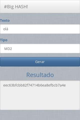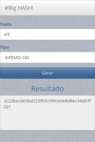 Gerador de hash, com vários métodos para gerar hash: Metódos suportados MD2,MD4,MD5,SHA1,SHA2 256,SHA2 512,SHA3 512,SHA3 224,SHA3 256,SHA3 384,Whirlpool,RIPEMD-160,Jenkins 32,Jenkins 64.