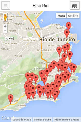 Aplicativo para visualização das estações do BikeRio disponíveis. Obs: As estações são públicas, porém a empresa Mobilicidade (http://www.mobilicidade.com.br/bikerio.asp) não disponibiliza API para integração com seu serviço de aluguel de bicicletas, nem aplicativo oficial para FirefoxOS. Portanto, só há a possibilidade de exibição do mapa das estações. Se alguém tiver uma melhor opção, estou aberto a ideias.