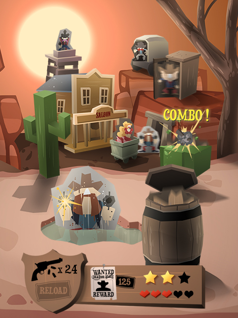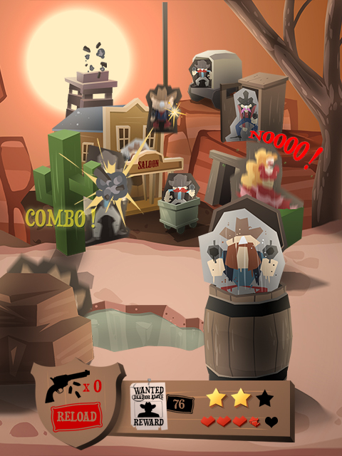 Get ready to shoot cowboy, because it’s time to deal with Billy the Kid and his gang of rascals. Those vermin are trying to take control of the city and if we want to be able to drink peacefully in the saloon, we are going to have to make them understand who’s the sheriff in this town… which is you in fact so your are the one who’s doing the shooting part. While you’re at it, if you could save the daughter of the mayor and avoid shooting civilian, that would be nice. Billy the Kid is a first person shooter game in which you have to shoot on Billy and his acolytes. Those guys are under cover behind multiples part of decors but they are going to show themselves from time to time to aim at you. Shoot at them as soon as possible before they get close enough to reach you. You must also avoid shooting civilians, unless you don’t mind loosing points and lives. Shoot down as many of these renegade as you can with your colt through a hundred of levels that are becoming harder and harder. Show your dexterity and rapidity with your pistols and save the city before the sun set. Welcome to the Far West, cowboy!