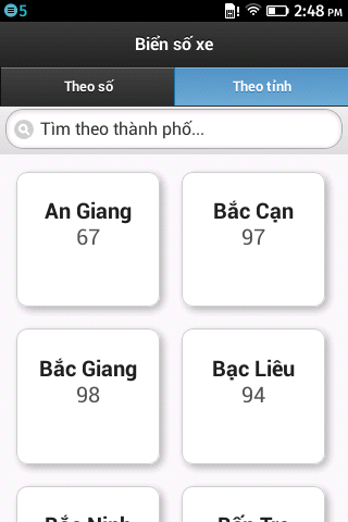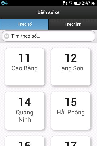 Ứng dụng giúp tra cứu thông tin biển số xe cơ giới, xem biển số xe đó được đăng ký tại tình thành nào của Việt Nam.