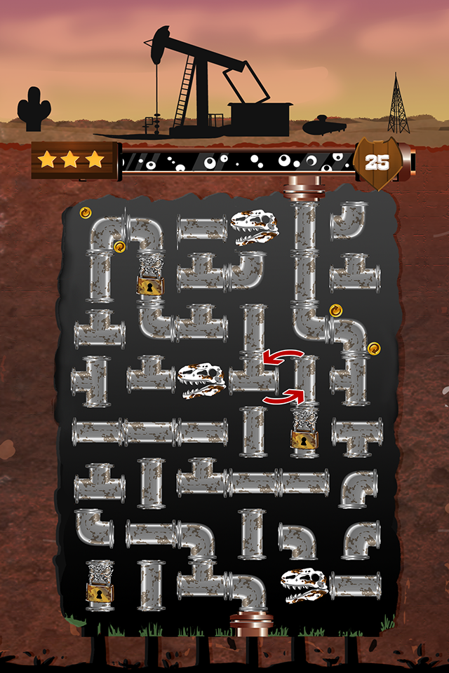 Become an oil tycoon in Black Gold Plumber and become the richest man on the Earth. Exploit all the oil reserve in Texas in this puzzle game that will put your brain to the test. Black Oil Plumber is an amusing game for the whole family! Only recommended for... everyone! CARACTERISTICS - 100 levels - 300 stars to collect - Best score - Touch the screen to rotate the pieces HOW TO PLAY? The new Gold rush has come and this gold is black! It’s time for you to take the commands and to join this race to wealth. Alas, the pipes installed to make the oil that you found emerge to the surface are in a dire state. It’s up to you to make it better! Through a hundred of always more difficult levels, you’ll have to create a way so that the petrol can make it to the surface. Put your brain to the test and become the king of petrol. Black Oil Plumber is an amusing game for the whole family! Only recommended for... everyone! You could also try one of our new free games : - Solitaire - Reversi (Othello aiment) - Jungle plumber - Water Blast - Brick Breaker: the challenge - The Speed Ninja - Club sandwich - Mahjong - Parking Panic - Forest jump