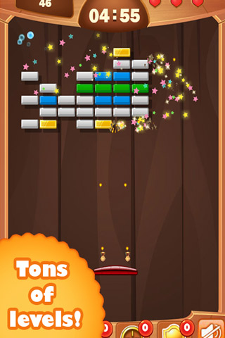 Block Buster brings the retro charm of a classic brick breaking game, that you just can't put down, to your phone, tablet and your desktop computer. The game features not less than forty levels packed to bursting with fun and increasingly hard challenges. You move the paddle from side to side using your finger or the mouse and try to bounce the ball around the screen to destroy all the blocks. Some blocks will drop mighty power ups that give you multi-ball, set the ball on fire or lengthen your paddle if you manage to pick them up. But be careful not to pick up one of the negative extras, that could for instance shorten the platform. Can you go through all the levels?