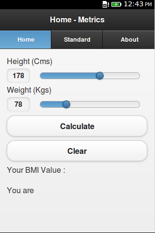 is lightweight app which calculate your body mass index value and about ur body structure (such as Obesity, Normal Weight, ...).