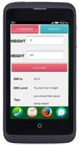 A simple Body Mass Indexing (BMI) Calculator. -Very user friendly UI -Easy way to input height and weight values. -It supports both English and Metric measurement units. -Showing BMI value with appropriate tips.
