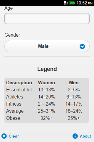 Body Fat Percentage Calculator is the simplest way to estimate your Body Fat Percentage. The Body Fat Percentage is calculated based on BMI, age and gender. Keywords: body fat, body fat ratio, body fat percentage