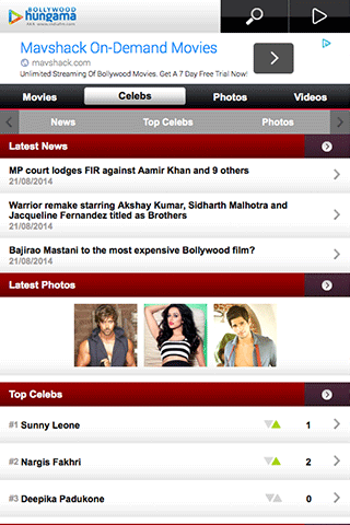 Bollywood Hungama the world's most read Bollywood portal, bringing all the glitz & glamour of celebrity parties, Latest Movie and Celeb news, Movie Trailers, Celebrity Wallpapers, Movie Information and Critic reviews at your finger tips via this app.