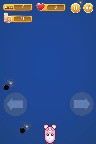 This game's goal is to move to avoid bouncing bombs. Must move left and right to avoid bouncing bombs. Have thrill of avoiding flashing bombs. Cheer the cute mouse. Compare your score with other's in global leaderboard.