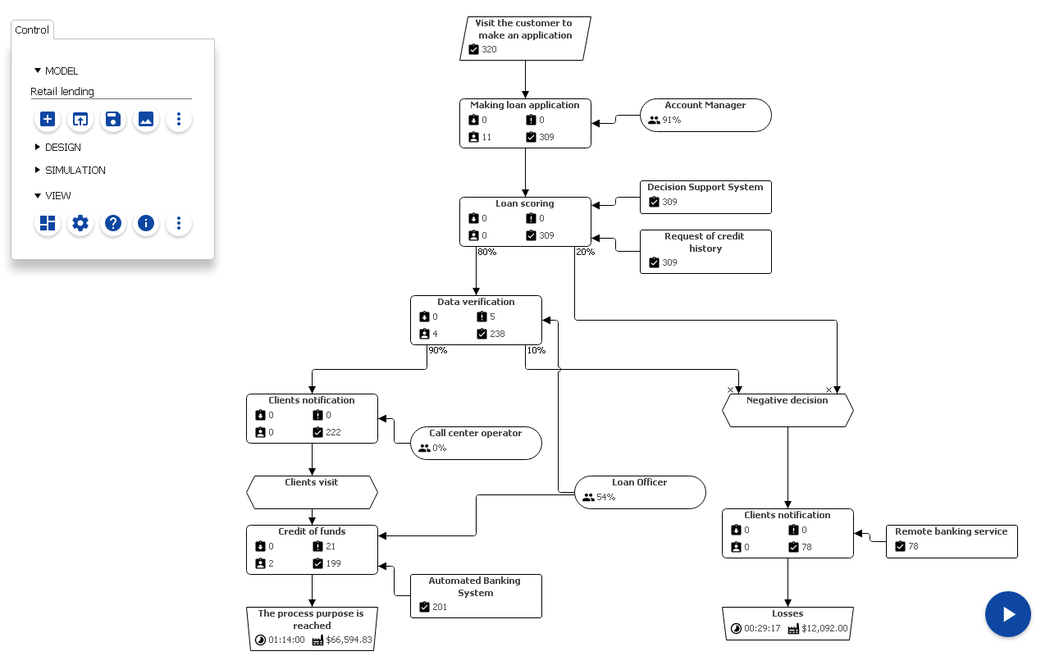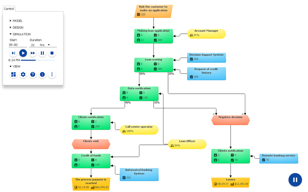 Business Process Simulator Purpose: ✔ Find performance bottlenecks ✔ Test process improvement ✔ Get performance indicators App Features: ✓ Visual model mapping ✓ Import from BPMN, EPC, Visio ✓ Discrete-event simulation ✓ Productivity dashboard ✓ Make the responsibility matrix ✓ Operating time and cost calculation ✓ Cloud file storage Applying: ✓ Products and services development, optimization, reengineering, productivity, lean manufacturing and ABC-costing. Need help? Have a proposal? Contact us. We have planned a lot of improvements for this year. For any enquiries, please refer to the Reference Guide https://www.bpsimulator.com/en/help/ or feel free to contact us [email protected]. Please support us by rating this app. Thank you!
