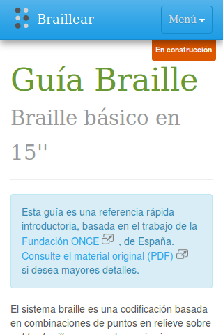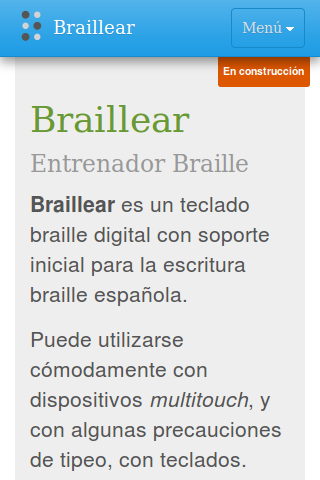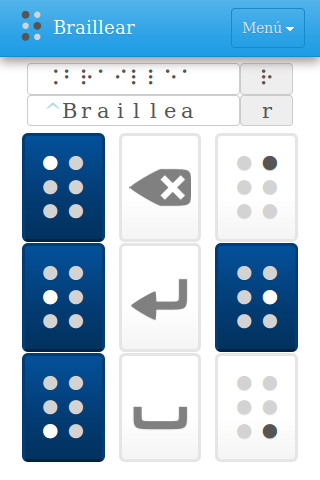 Braille trainer and keyboard. Includes an introductory braille guide. Six-dots touch keyboard, much as a perkins machine, featuring both a braille and a latin display. By this time, only an initial Spanish braille support is provided (you may note some differences with braille notation as you know it if you are familiar with some other country's version of it.)
