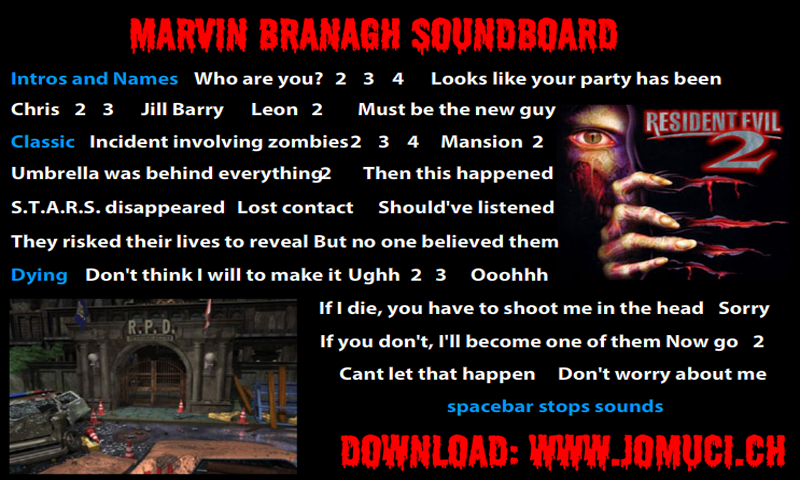 Marvin Branagh is a police officer on Resident Evil 2 who dies, and turns into a zombie. Html5 web app audio soundboard!