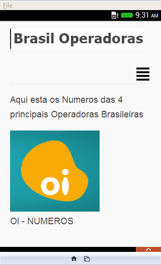 Brasil Operadoras Neste Aplicativo Simples, nulo consumo de memoria e sem acesso a DADOS, temos os números das 4 principais operadoras de Tele móvel do Brasil (TIM, CLARO, VIVO, OI).