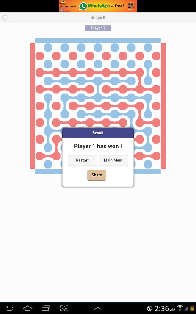 Connect the line 'Bridge it fast' is a Color based puzzle game, when you have to connect a color from one end to other end of the board. In the meantime your opponent is trying to do the same, one cant cross another ones bridge so its a complete strategic games to block your opponent way and build your bridge meantime.