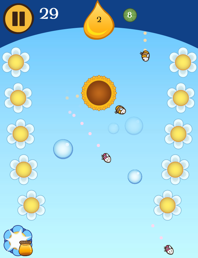 The bees are sick... can you help them? Create bubbles to bounce falling bees into nourishing flowers in this adorable arcade game! Over the course of 30 levels, you'll collect honey, unlock upgrades, and discover lots of special bees and flowers! Try to get a gold flower on every level!